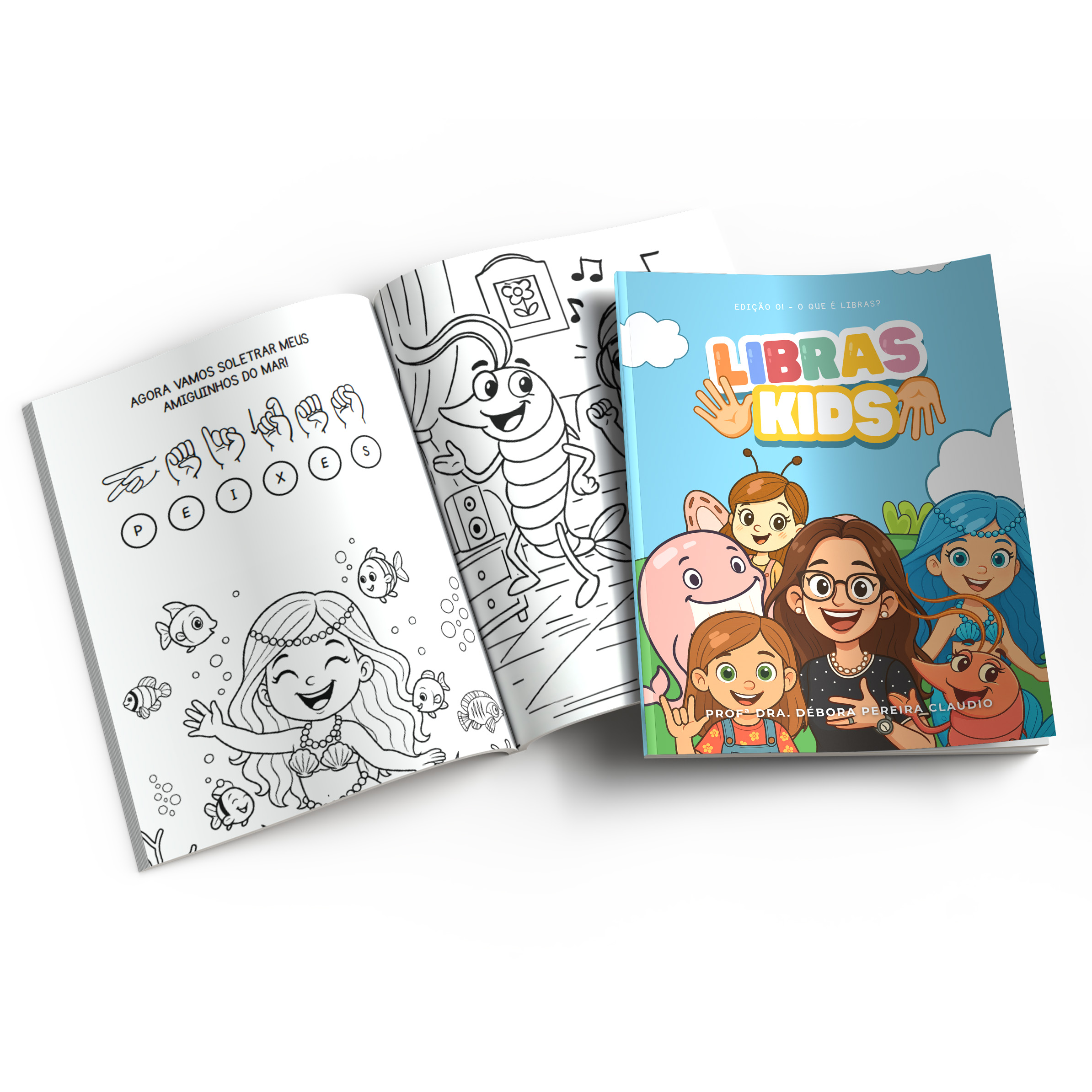 Libras Kids é uma revista física pensada para crianças, com o objetivo de apresentar a Libras de forma leve, divertida e inclusiva. Esse Kit acompanha a Edição 01 e 02. Desenvolvida para ser usada em casa, na escola ou em projetos educativos, a revista traz histórias ilustradas, músicas infantis com QR Code para aprender os sinais, personagens encantadores e atividades que estimulam o aprendizado natural da língua de sinais.